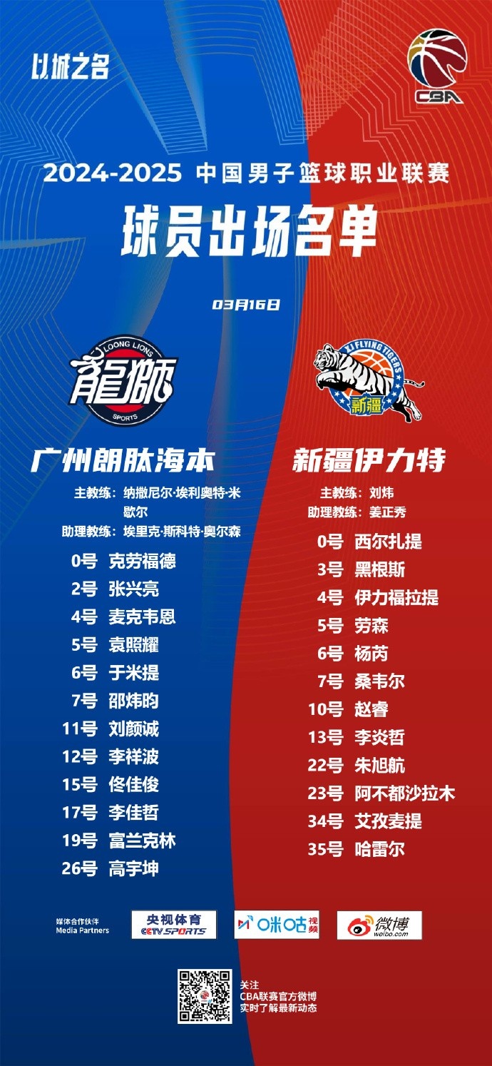 新疆隊VS廣州隊大名單:哈雷爾在列 齊麟缺陣 趙睿&阿不都領銜