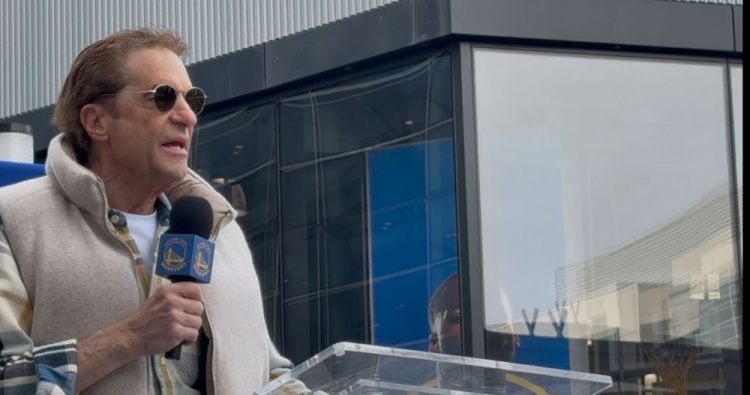 而我們現(xiàn)在所在的地方,就是一個成功運(yùn)營的典范。當(dāng)他們買下球隊時,他們告訴我們,他們會掛上冠軍旗幟,而他們確實做到了。所以讓我們來聽聽這兩位——讓勇士成為全球知名品牌的兩位人士的發(fā)言。