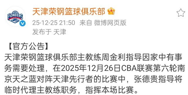 按照慣例,如果是臨時擔(dān)任代理主帥,天津男籃是不用發(fā)布公告的,顯然周金利是另外一種方面讓位。張德貴可以說是CBA老面孔了,當(dāng)初也是帶領(lǐng)天津男籃打進(jìn)過季后賽,上賽季他一度前往四川男籃。
