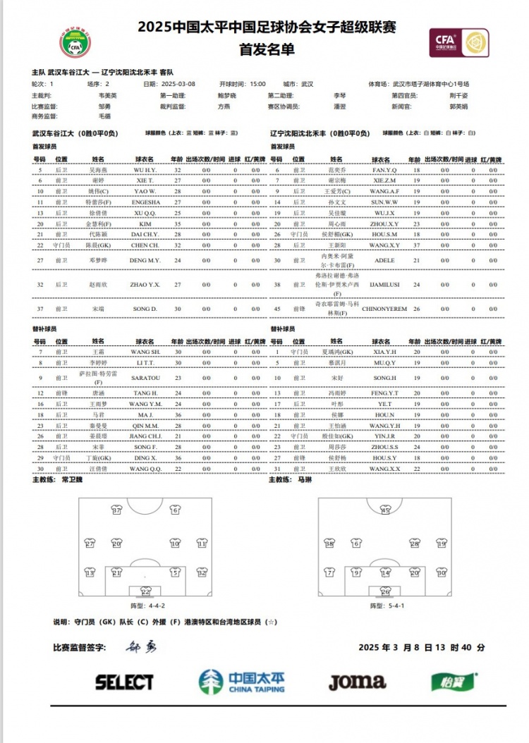 今天下午15:00,武漢車谷江大將在首輪女超聯(lián)賽主場迎戰(zhàn)遼寧沈陽沈北禾豐。身披武漢7號球衣的王霜,進入球隊比賽名單,但并未進入首發(fā)。本場比賽,王霜大概率將迎來回歸女超聯(lián)賽的首秀。