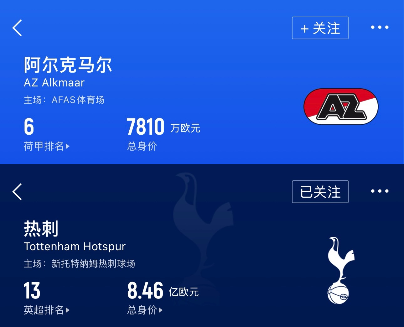 釘上恥辱柱?熱刺與阿爾克馬爾陣容身價差7.68億歐,創(chuàng)造尷尬紀錄