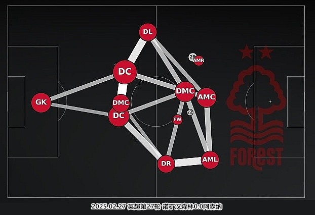 穆里略和米倫科維奇配合默契,埃蘭加和奧多伊可以深度退守保護(hù)邊后衛(wèi),克里斯-伍德總是在不停干擾對(duì)手的傳遞,吉布斯-懷特甚至能夠來到中衛(wèi)身前扮演清道夫……諾丁漢森林擁有正面防守能力出眾的中衛(wèi)組合,他們身邊聚集了多名柔韌性出眾、腳下纏斗能力強(qiáng)且愿意防守的攻擊手。努諾-桑托的球隊(duì)防守時(shí)頗具拉丁風(fēng)味,依靠錯(cuò)落有致的三線結(jié)構(gòu)堵塞禁區(qū)空間,就是他們的招牌動(dòng)作。