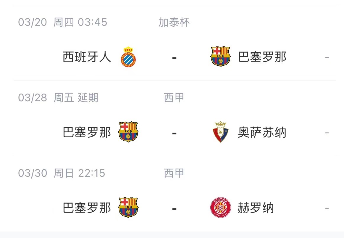 【相關(guān)閱讀】瘋狂加班????巴薩補賽被安排在27日,隊內(nèi)國腳主力幾乎都要受影響