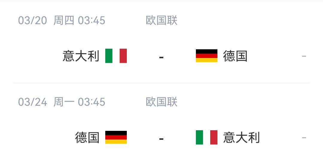 此前的歐國聯(lián)小組,德國隊(duì)力壓荷蘭、匈牙利和波黑以小組第一晉級(jí)淘汰賽,在1/4決賽中,他們要面對(duì)的是意大利隊(duì)。德國與意大利將在北京時(shí)間3月20日和3月24日凌晨進(jìn)行兩回合主客場(chǎng)的交鋒。