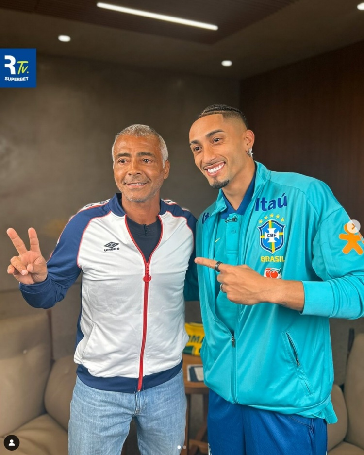 3月19日訊 巴西國家隊(duì)已經(jīng)集結(jié)備戰(zhàn)新一輪南美世預(yù)賽,羅德里戈、拉菲尼亞以及恩德里克三人做客Roma?rioTV節(jié)目,與巴西傳奇球星羅馬里奧合影留念。
