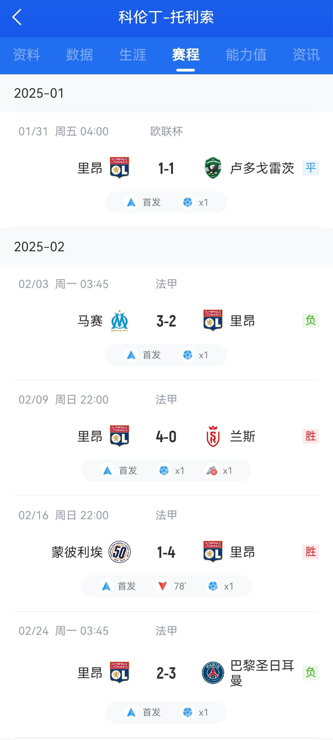 02月25日訊 在周末的法甲第23輪中,里昂2-3不敵巴黎,本場(chǎng)比賽托利索打入一球,他在里昂的近5場(chǎng)比賽中每場(chǎng)都能打入一球。