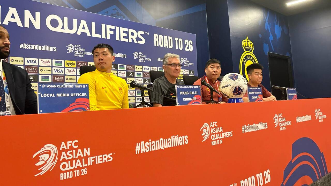 王大雷出席沙特vs國足賽前發(fā)布會。