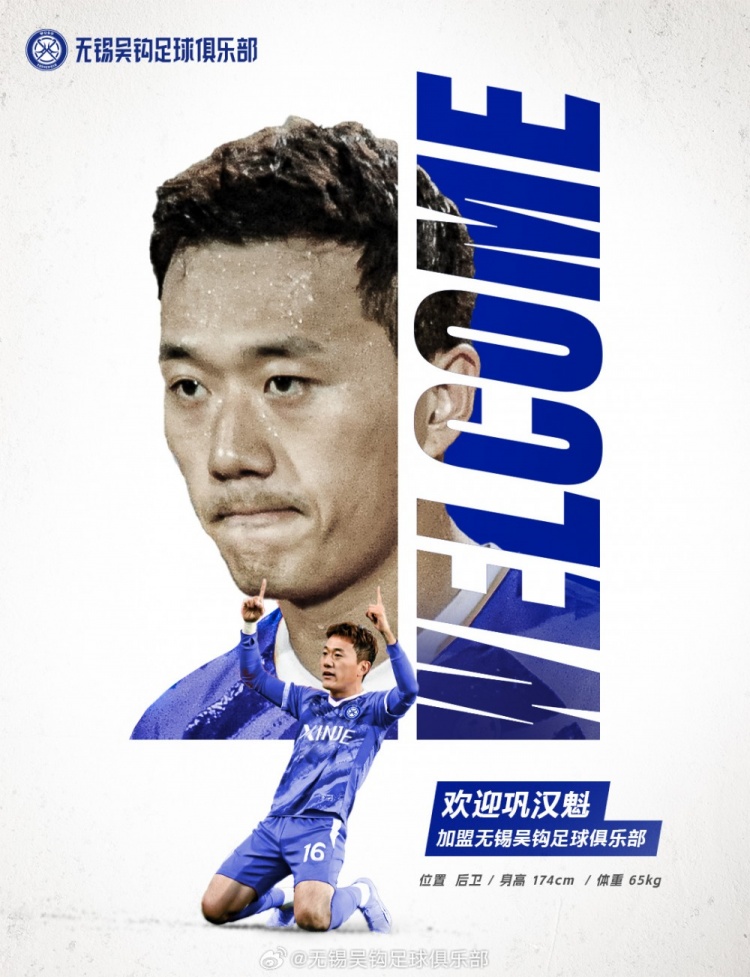 我們在此鄭重宣布,經(jīng)雙方協(xié)商一致,球員鞏漢魁加盟無錫吳鉤足球俱樂部。2025賽季,他將為無錫而戰(zhàn)!