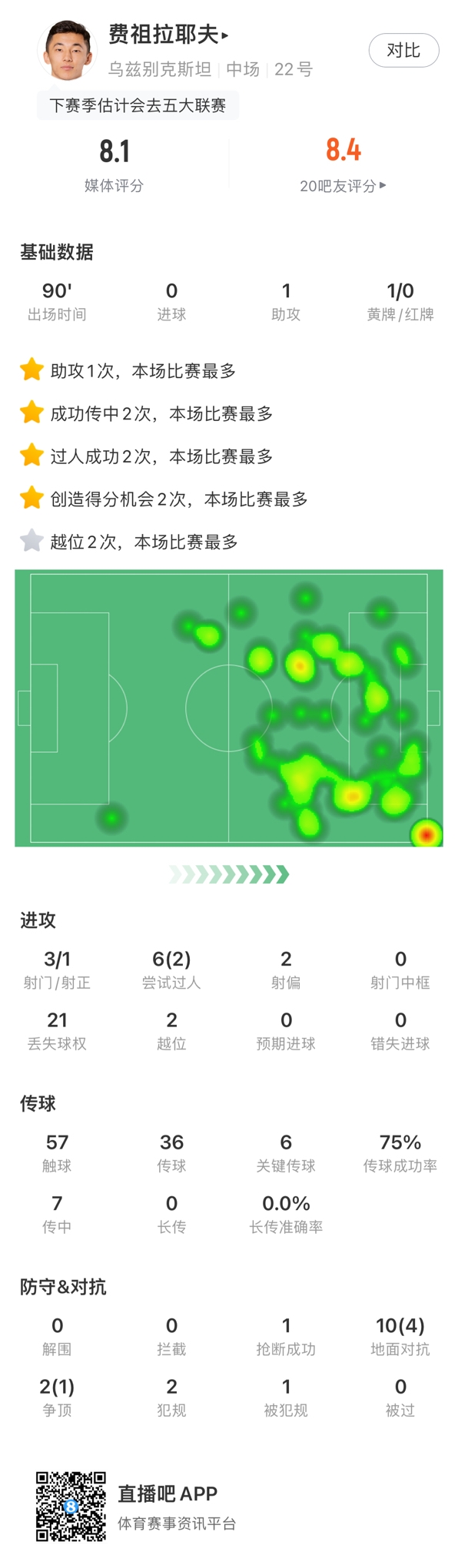 下一站五大聯(lián)賽?烏茲21歲中場(chǎng)費(fèi)祖拉耶夫1v6挑傳助攻,身價(jià)800萬(wàn)