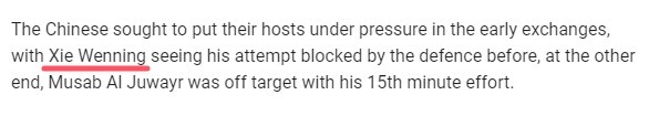 謝文“寧”是誰?亞足聯(lián)戰(zhàn)報(bào)中將Xie Wenneng寫為Xie Wenning