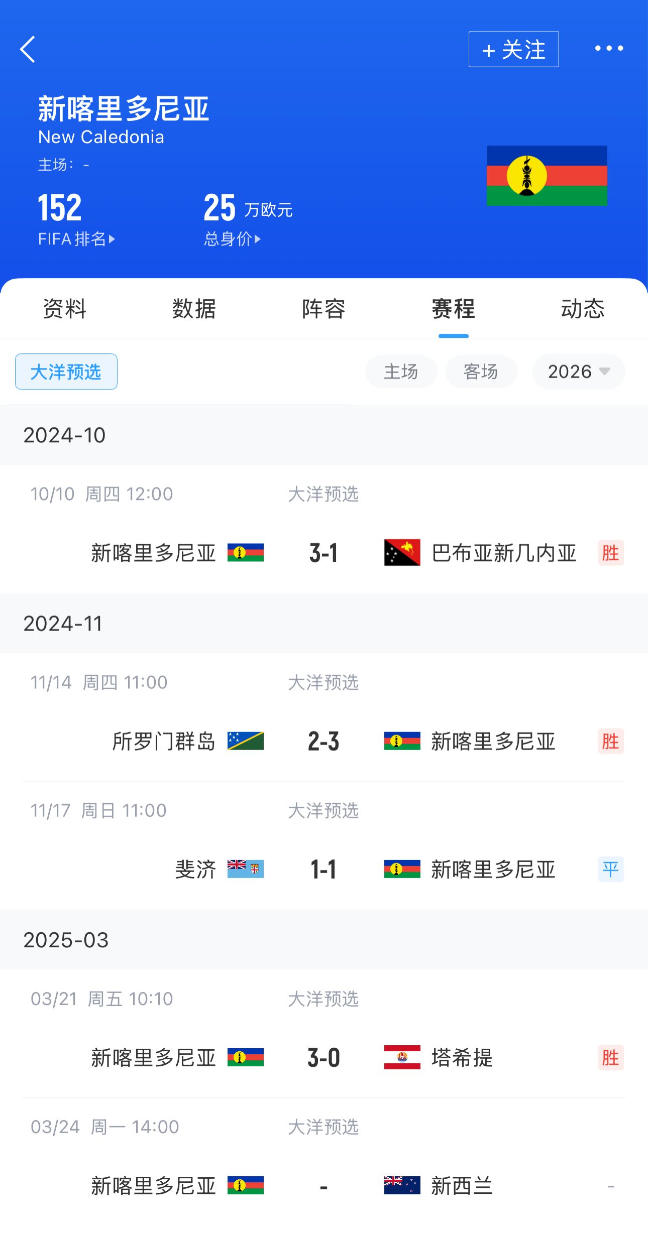 新喀里多尼亞FIFA排名第152,陣容身價25萬歐,不及新西蘭的百分之一。