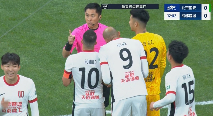 比賽第11分鐘,楊立瑜突破至禁區(qū)內(nèi)摔倒,馬寧果斷判罰點(diǎn)球!隨后VAR介入,馬寧去場邊查看后維持點(diǎn)球判罰。第18分鐘法比奧點(diǎn)射破門國安1-0領(lǐng)先蓉城。