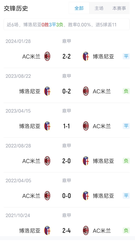 目前意甲25輪比賽過后,AC米蘭11勝8平6負(fù)積41分,位列意甲第7位。博洛尼亞10勝11平4負(fù)積41分,位列第8。