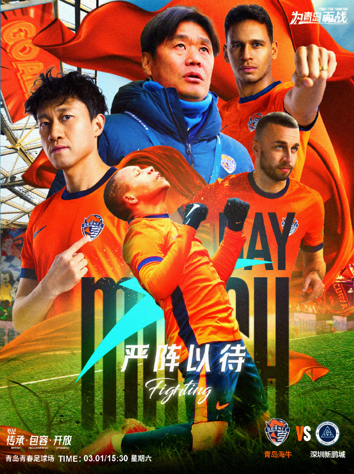 03月01日訊 15:30中超第二輪,青島海牛對(duì)陣深圳新鵬城。賽前雙方公布本場(chǎng)首發(fā)。