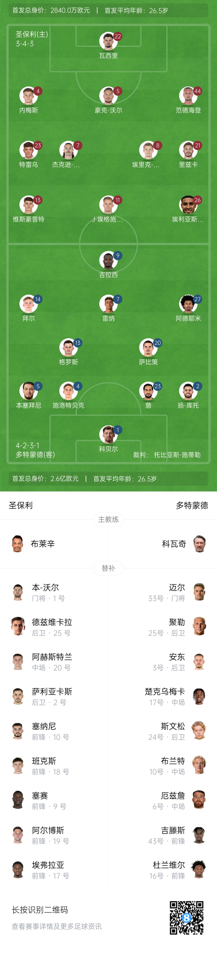 多特vs圣保利首發(fā):阿德耶米、吉拉西先發(fā),薩比策、格羅斯出戰(zhàn)