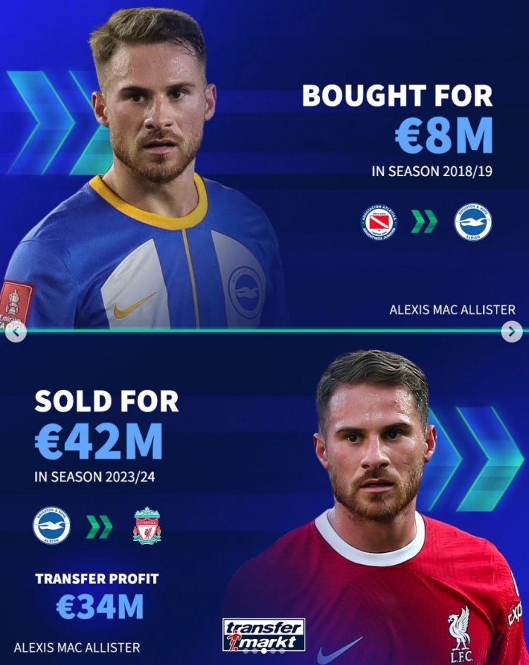 麥卡利斯特:800萬歐元引進(jìn),4200萬歐元出售,凈賺3400萬歐元