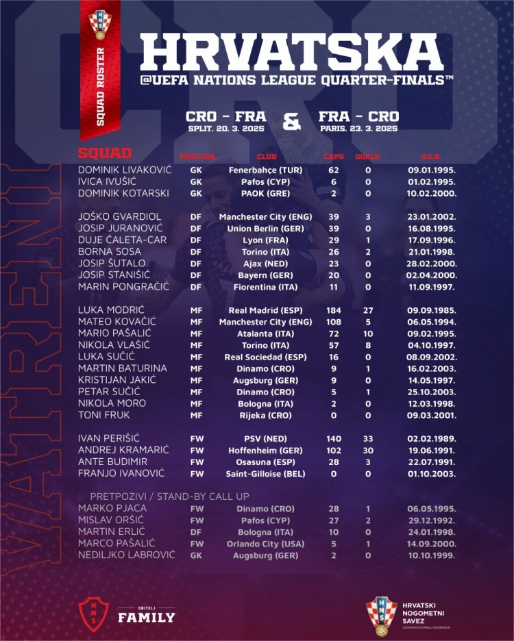 3月國(guó)際比賽日,克羅地亞將在歐國(guó)聯(lián)比賽中兩回合對(duì)陣法國(guó)隊(duì)。