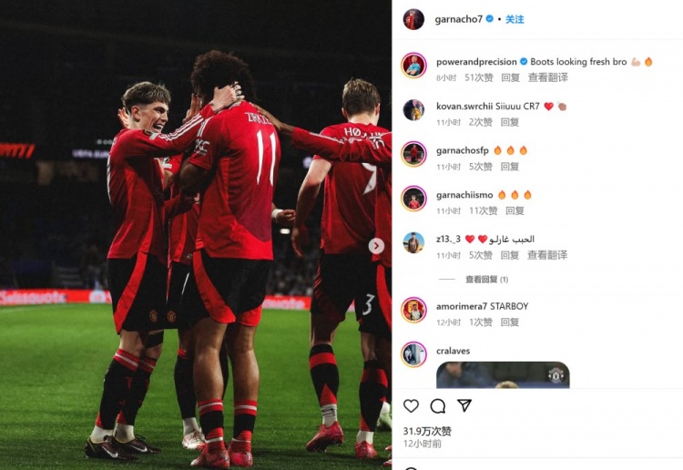 兩人也都在賽后通過社媒曬出比賽照紀念,但沒有附加文字內(nèi)容。而隊長馬奎爾則現(xiàn)身齊爾克澤的評論區(qū)并夸獎:“愛了,兄弟!”